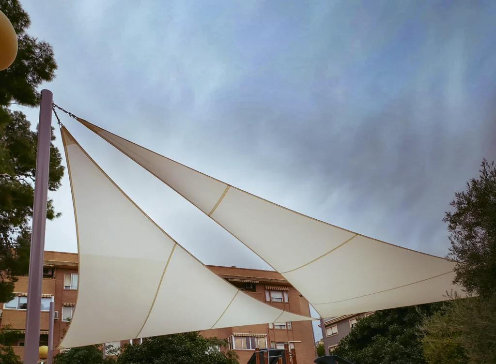 Estas estructuras, conocidas como toldos velas, están fabricadas con telas resistentes y duraderas, como poliéster de alta calidad o lona, que ofrecen protección contra los rayos ultravioleta (UV), la lluvia y el viento. Se instalan tensadas entre puntos de anclaje, como postes o paredes, y pueden adoptar formas triangulares, cuadradas o rectangulares, permitiendo una adaptación personalizada a diferentes espacios y necesidades.